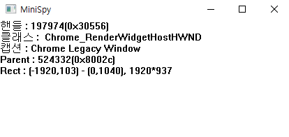 마우스 커서가 가르키는 윈도우의 핸들값, 클래스, 캡션, 부모, 위치를 표시해줍니다.