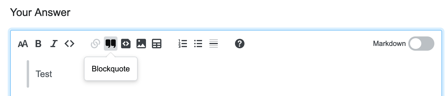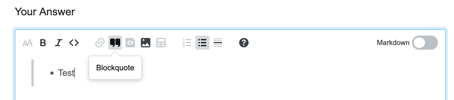 (In Markdown mode, the bulleted list replaces the blockquote formatting, which is OK behaviour IMHO; especially, the buttons don't have a gray outline.)
