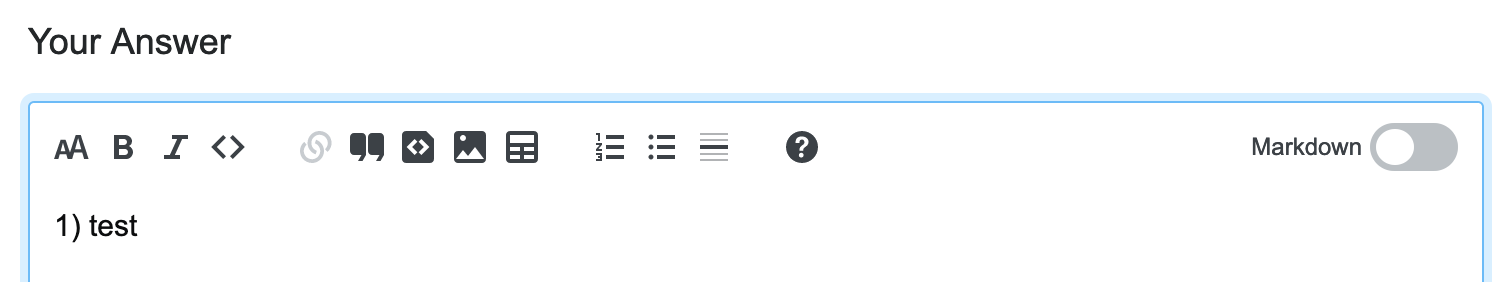 When typing 1. test in Rich Text mode, the editor automatically recognizes it as a bulleted list. Great! When typing 1) test, it doesn't: