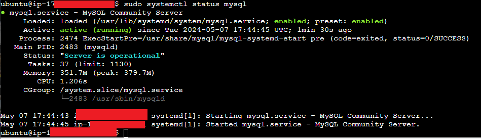 Figure 5: Successfully setup mysql community on my virtual ec2 instance.