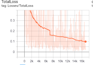The objective is to minimize the loss function through the training. In different words, it means the model is making fewer errors. All machine learning algorithms will repeat many times the computations until the loss reach a flatter line. Minimization of this loss function depends on the learning rate ( speed the model learns). If learning rate is too high, the model does not have time to learn anything. However, on checking the learning rate defined in the model, it is 0.0002 which is low when compared to the other model. Then on further research, it is found that the model is not learning because it is trained for one class and it automatically creates another class called background. The background is trained using the regions of the training images that are not labelled as the desired classes (in your case, F1). The solution is to add training samples that include images that have both F1 and the objects that shouldn’t be recognized as F1, in the same scene. Also increasing the number of epochs should improve the precision (stackoverflow, 2019)