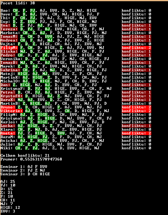 Bruteforce search for the best seminar configuration