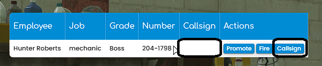 Ok, so i am adding in a callsign option to esx_society but i am currently stuck at how to input the callsign to the database using esx_menu_dialog. Click on callsign then the esx_menu_dialog appears and imput whatever callsign and it saves to the database.