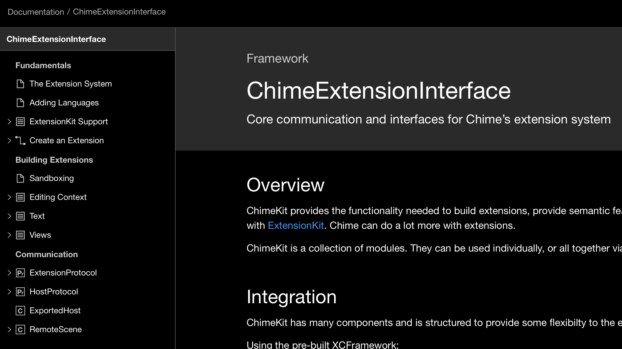Hmm, so yes, ChimeKit has multiple targets. But I can see the documentation for the one I'm talking about right here: https://swiftpackageindex.com/ChimeHQ/ChimeKit/main/documentation/chimeextensioninterface And as for ConcurrencyPlus, why would the version of Swift influence the docs web configuration? |