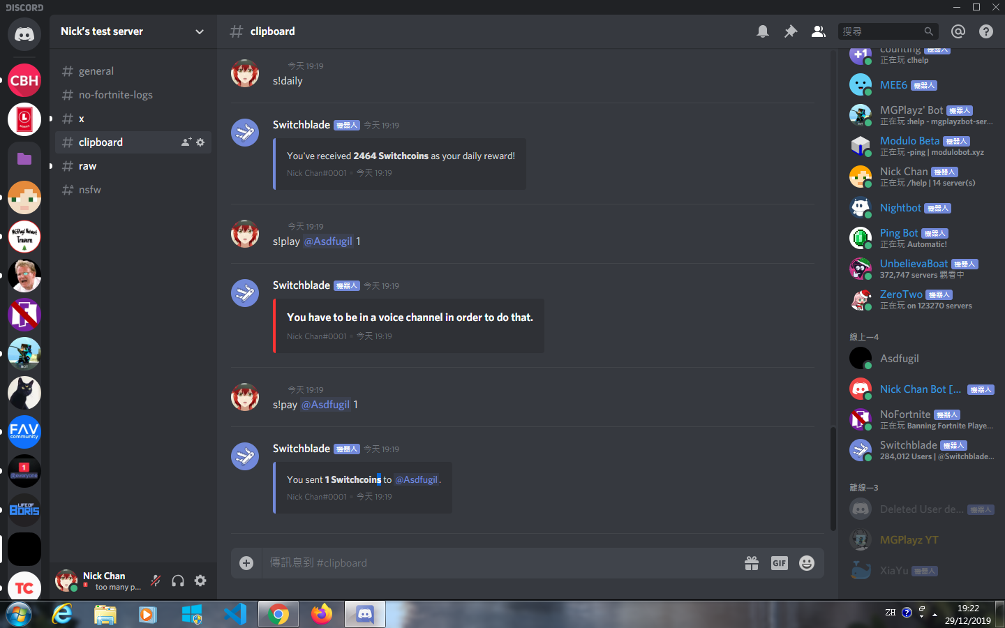 2.The bot said You sent 1 switchcoins to <user> Expected behavior