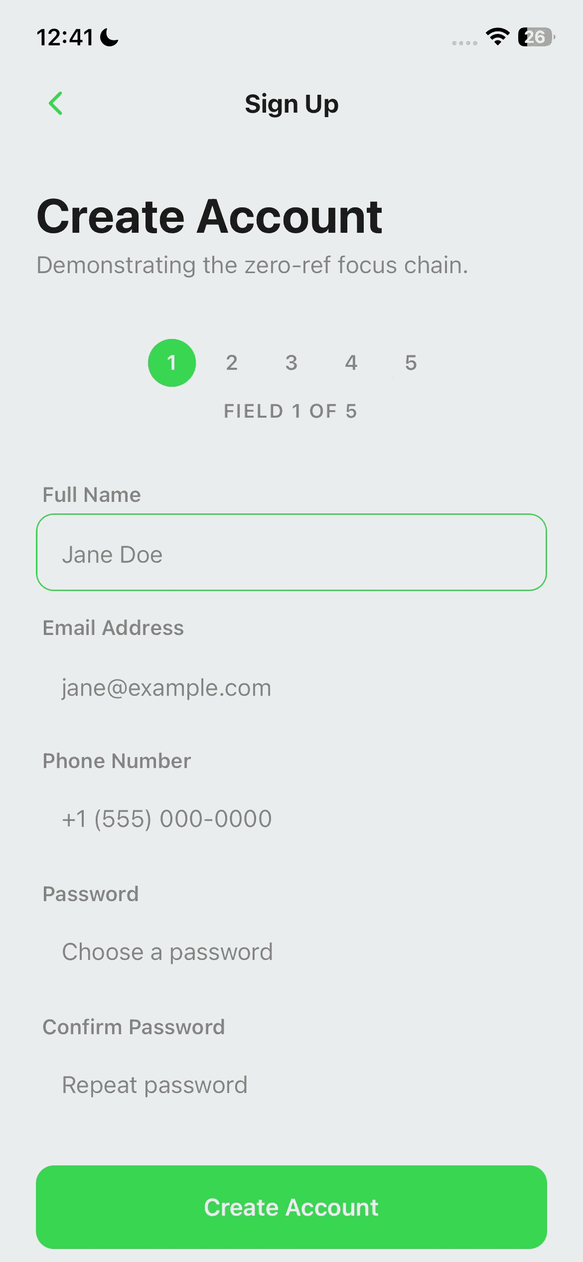 Drop FieldForm and FieldInput into any screen. Focus chaining, keyboard avoidance, and return key types are all handled automatically.
