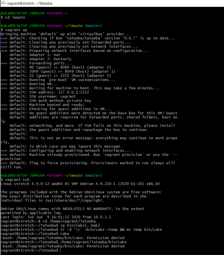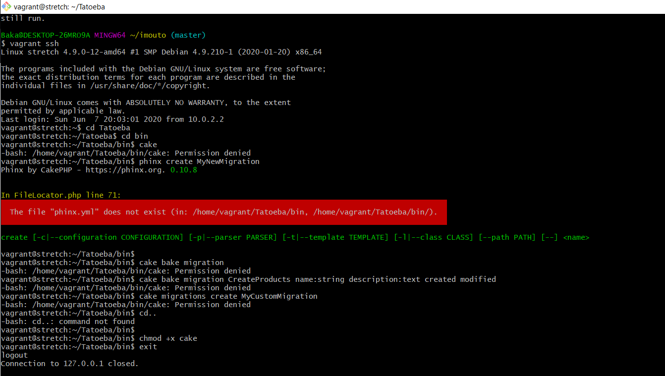 About the permission error: I forgot that you have to reset the executable bit on the file: |