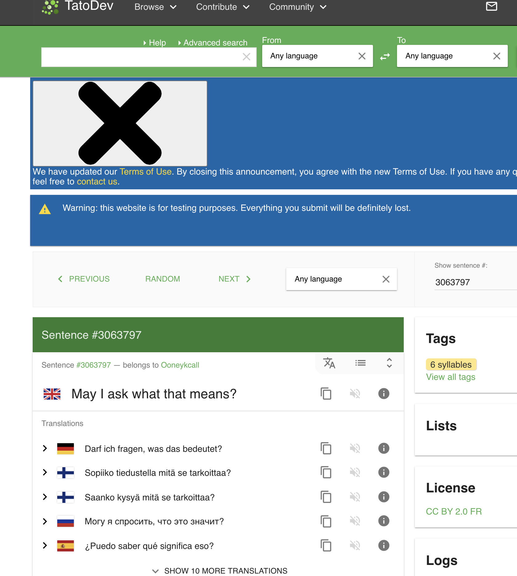 And to be honest I thought the test case would be the next assignment after we finished this one (I looked a little bit in to test cases of tatoeba, but I got confused because it was just datasets). But i really would love to get this issue resolved soon! We spent now exactly 1 month on it, I was thinking this would be a job for a day or 2. greetings |