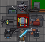 Пояс с улучшенными инструментами и ЭМИ фонариком, булльдог, разные магазины для него, мезонки, граната с менхаками, емаг, дебаггер.
