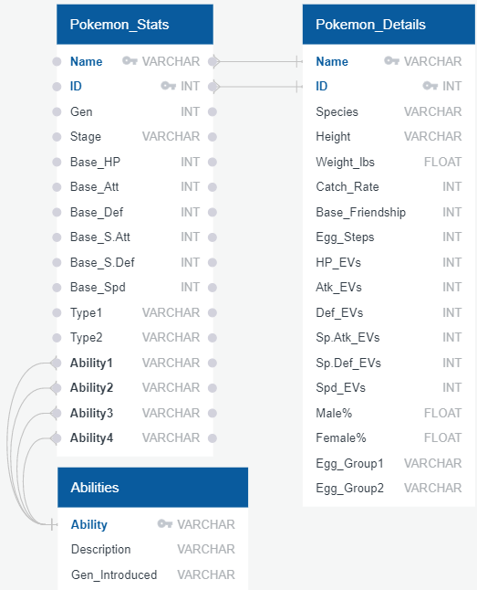 - Pokemon_Details to contain character-specific information (height, weight, breeding stats, etc)