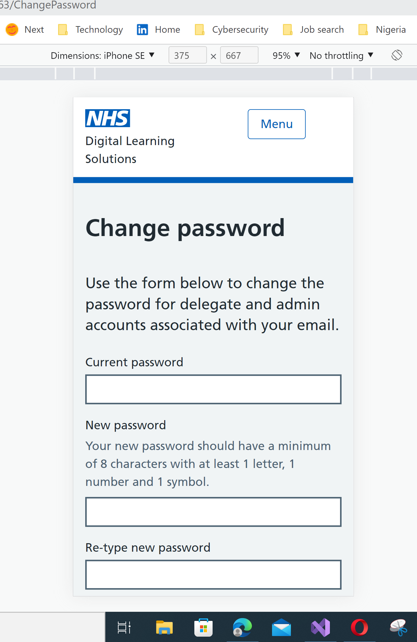 Issue with the length of the input boxes on the 'Change password' screen in 'Mobile view'.