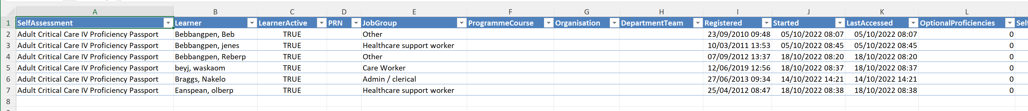 Removes DLSRole column and excludes learners with admin roles from the Self Assessment reports