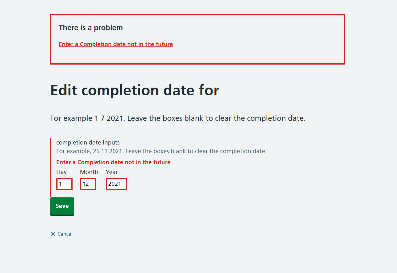 Doesn't let you say a course has been completed in the future (but the course name disappears)