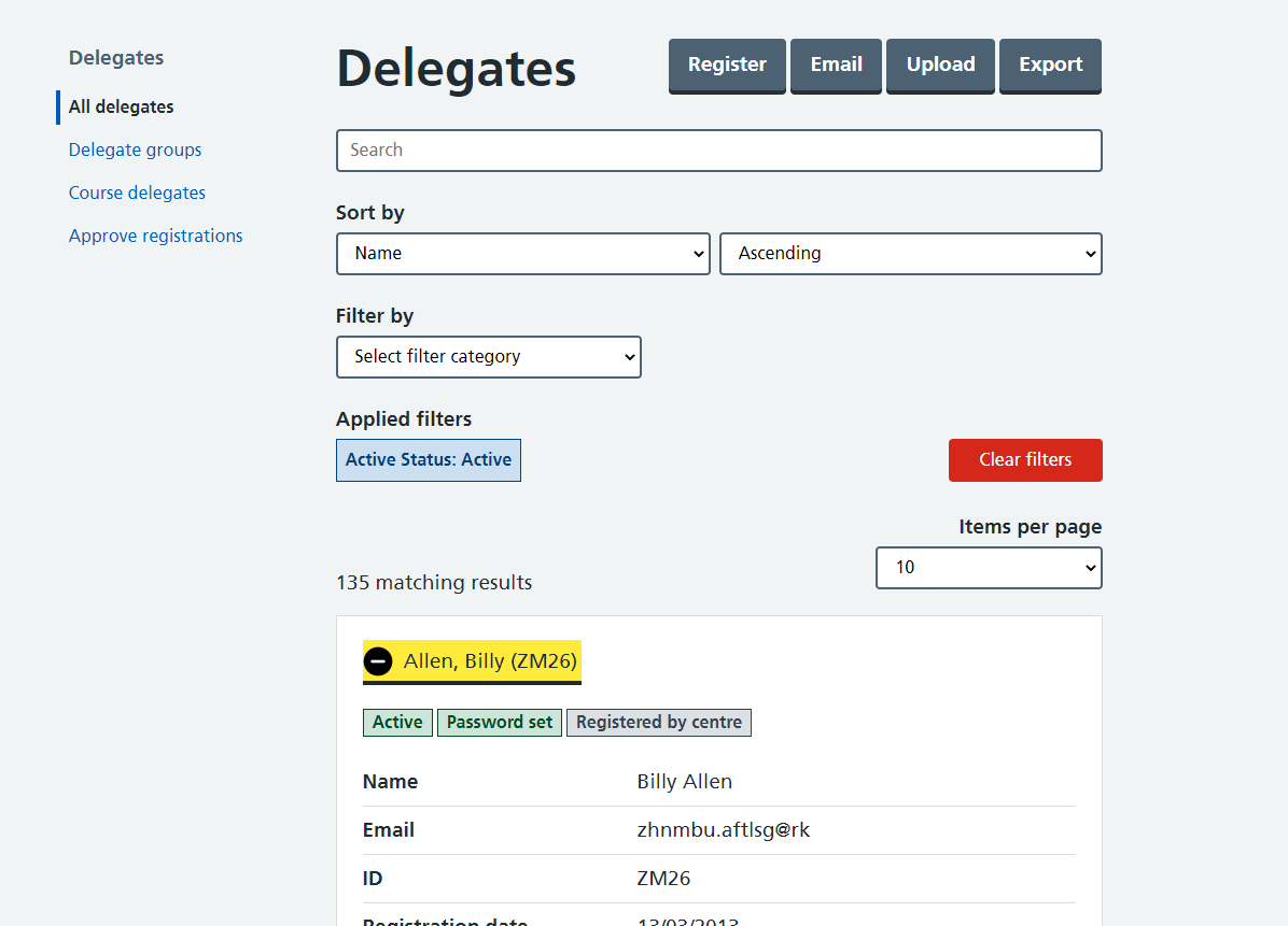 Changed the name order on the Centre Admins, All Delegates, Group Delegates and Add delegate to group pages.
