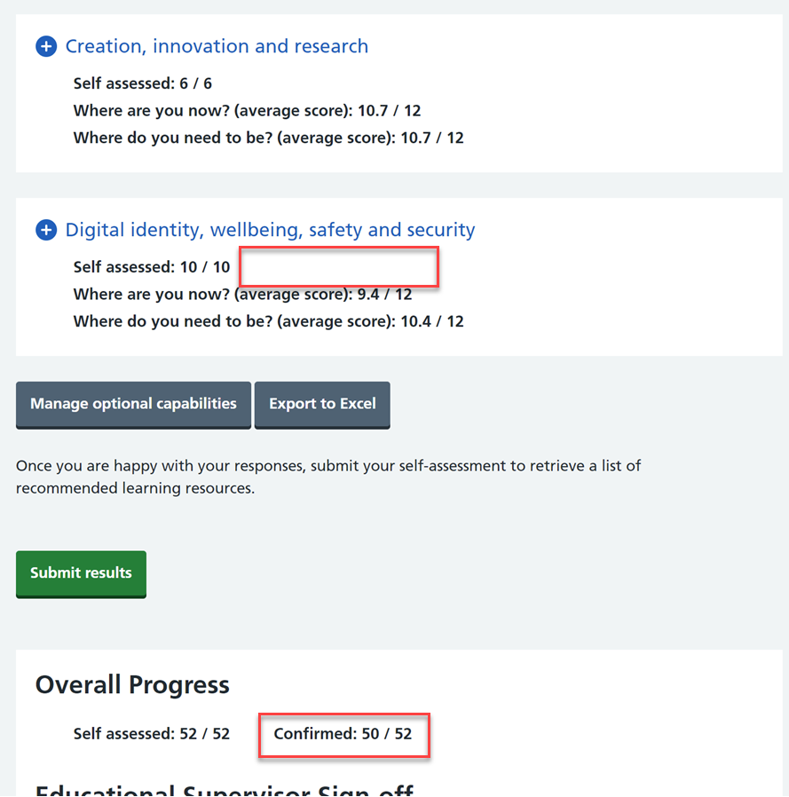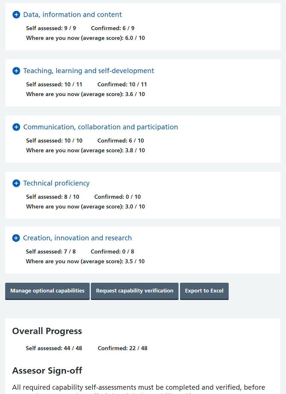 Add overall progress summary to Sign-off area on SelfAssessmentOverview.cshtml.