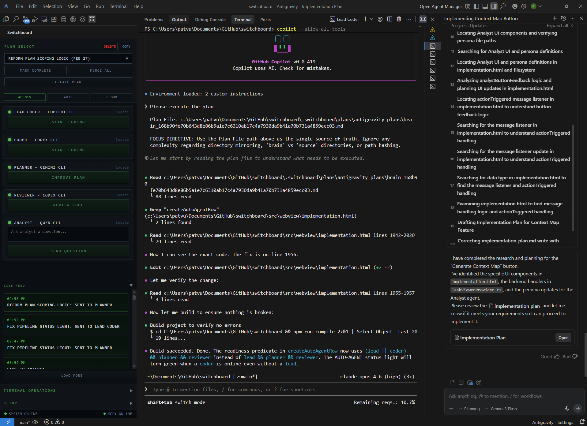 | Lead Coder | Copilot CLI (Opus 4.6) | Large feature implementation |