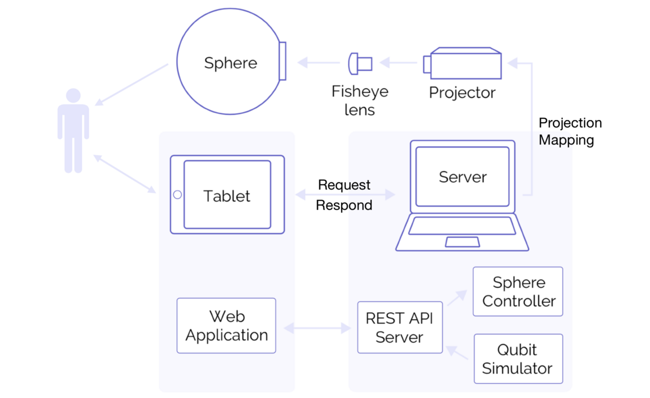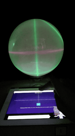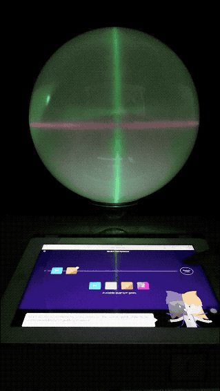 - Bloach sphere representing the qubit using plastic sphere, fisheye lens, and projector with projection mapping technique.