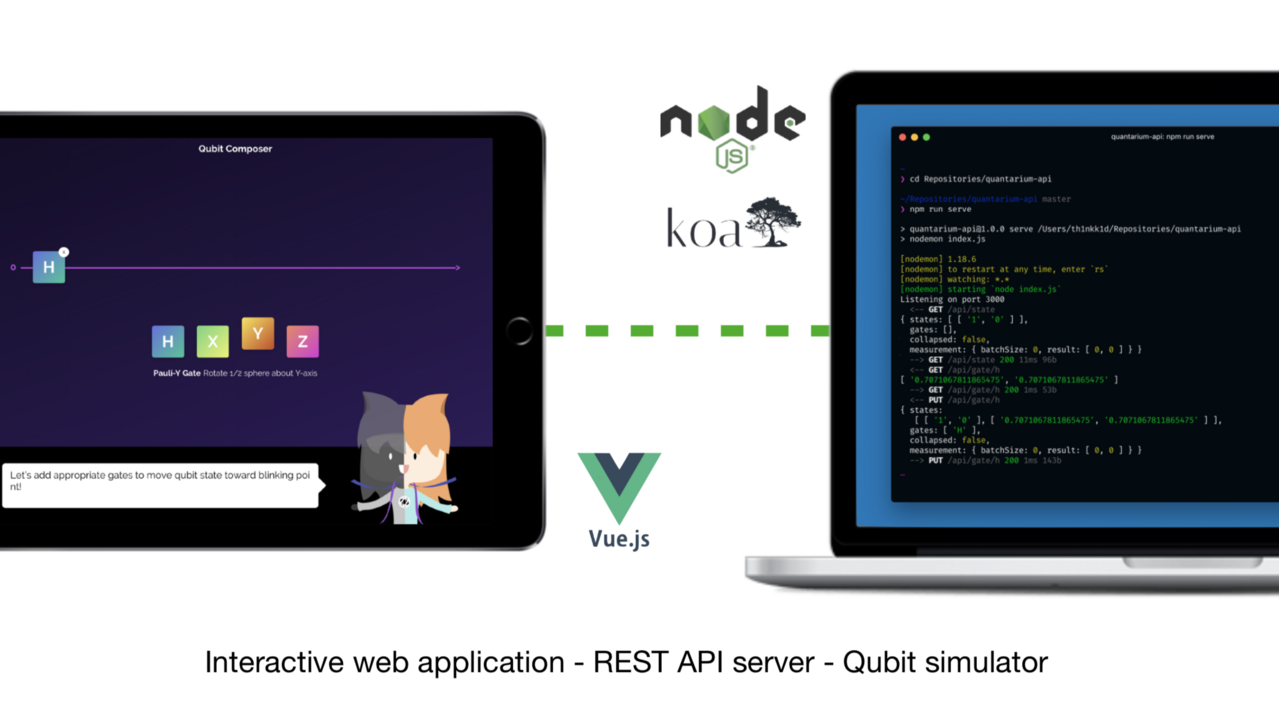 - Frontend web appllication on tablet providing user interface for user to follow the storytelling tutorial or controling qubit simulation.