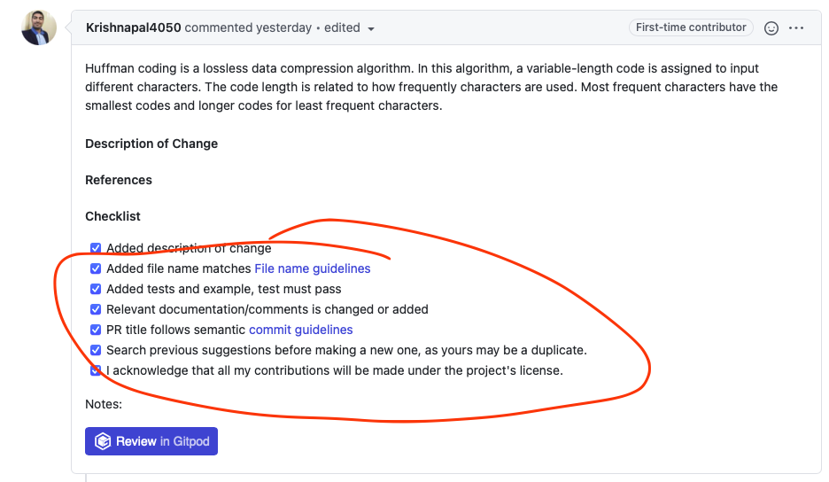 Huffman coding is a lossless data compression algorithm. In this algorithm, a variable-length code is assigned to input different characters. The code length is related to how frequently characters are used. Most frequent characters have the smallest codes and longer codes for least frequent characters.
