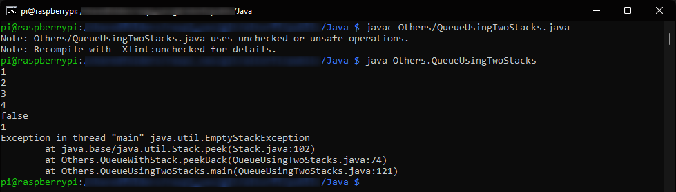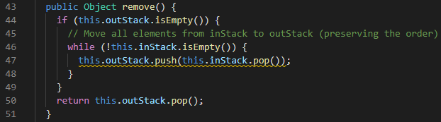 The program should print "null" to show that the inStack is empty but instead the program crashes when trying to access an element of the empty stack.