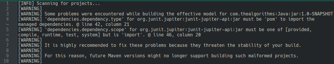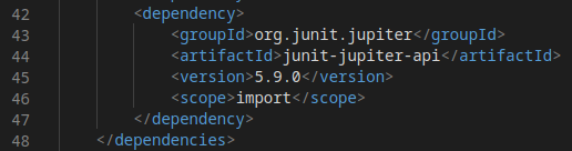 The scope of the artifact junit-jupiter-api in pom.xml should be test as it is only used for testing purposes. This misconfiguration is throwing a warning when building the project.