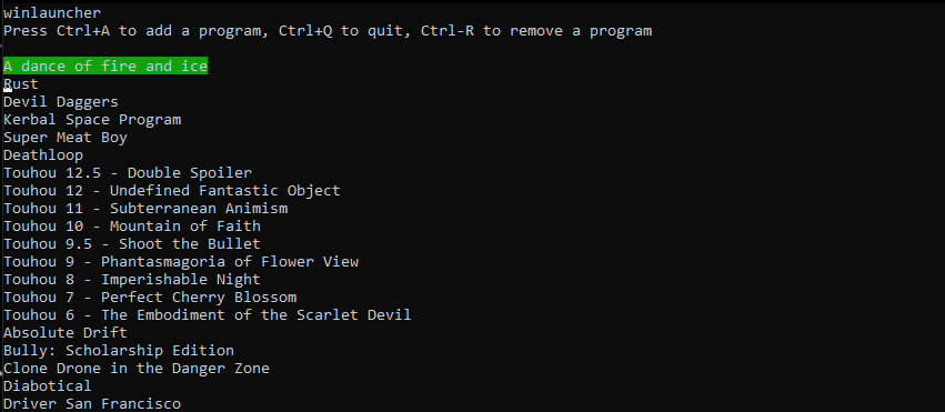 When running the program, use Shift+A to add a program, Shift+Q to quit, and Shift+R to remove a program