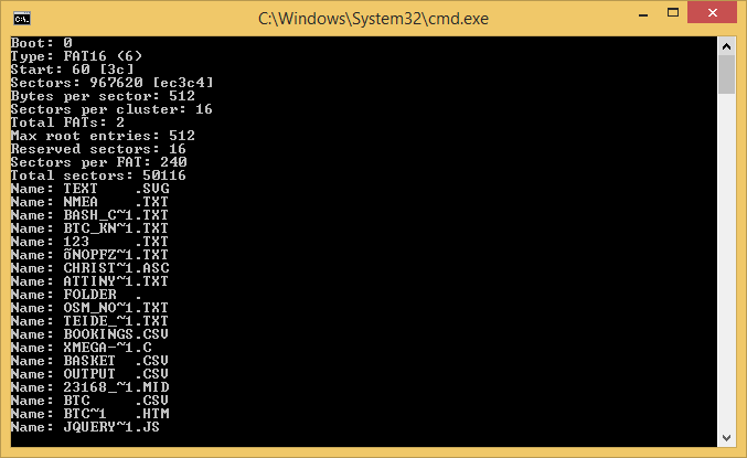 libfat Small example of a FAT16/32 C implementation, should be portable to AVR ATMega and PIC32. Current progress: @12.04.2014 20:09