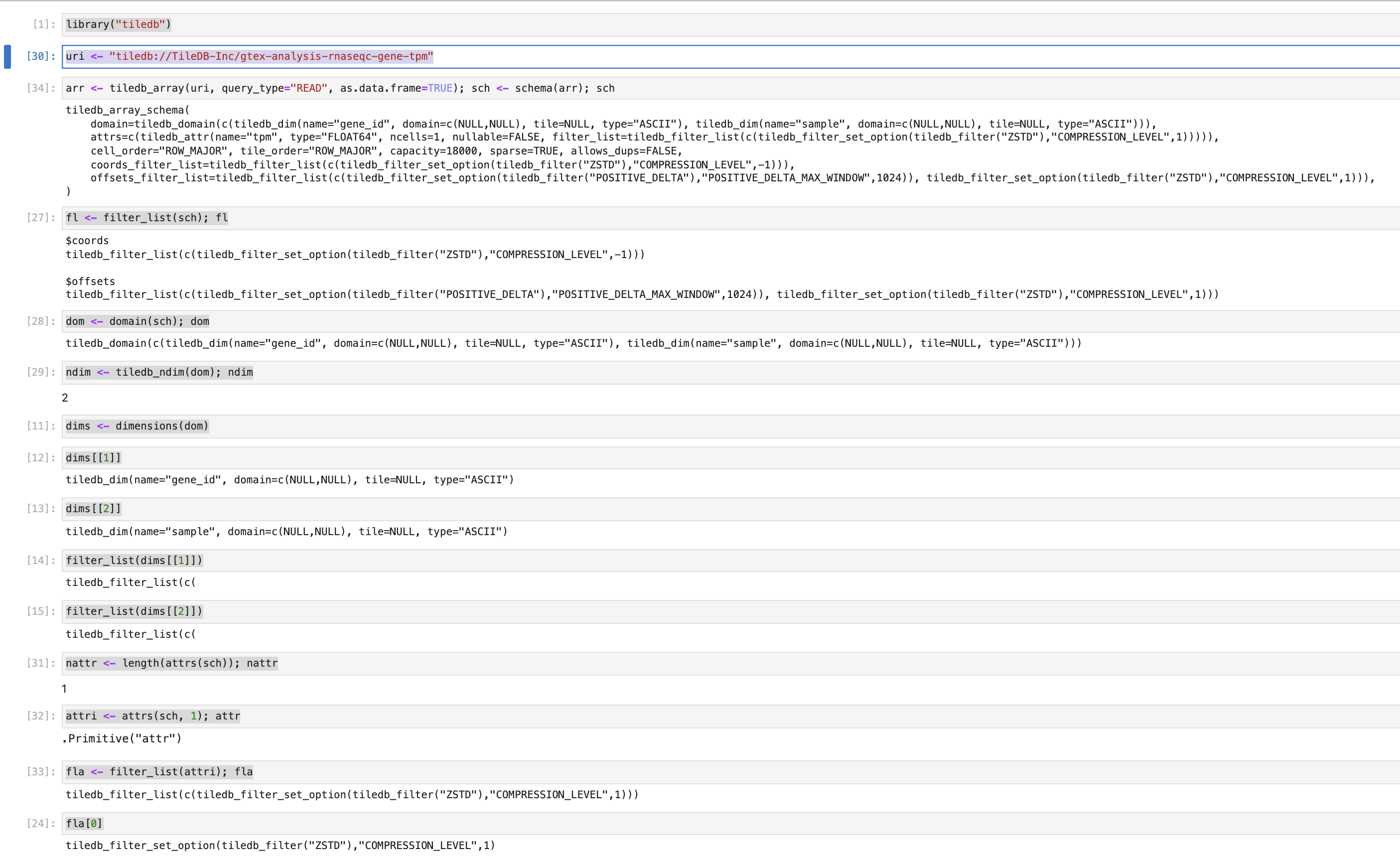 attrs=c(tiledb_attr(name="tpm", type="FLOAT64", ncells=1, nullable=FALSE, filter_list=tiledb_filter_list(c(tiledb_filter_set_option(tiledb_filter("ZSTD"),"COMPRESSION_LEVEL",1))))),