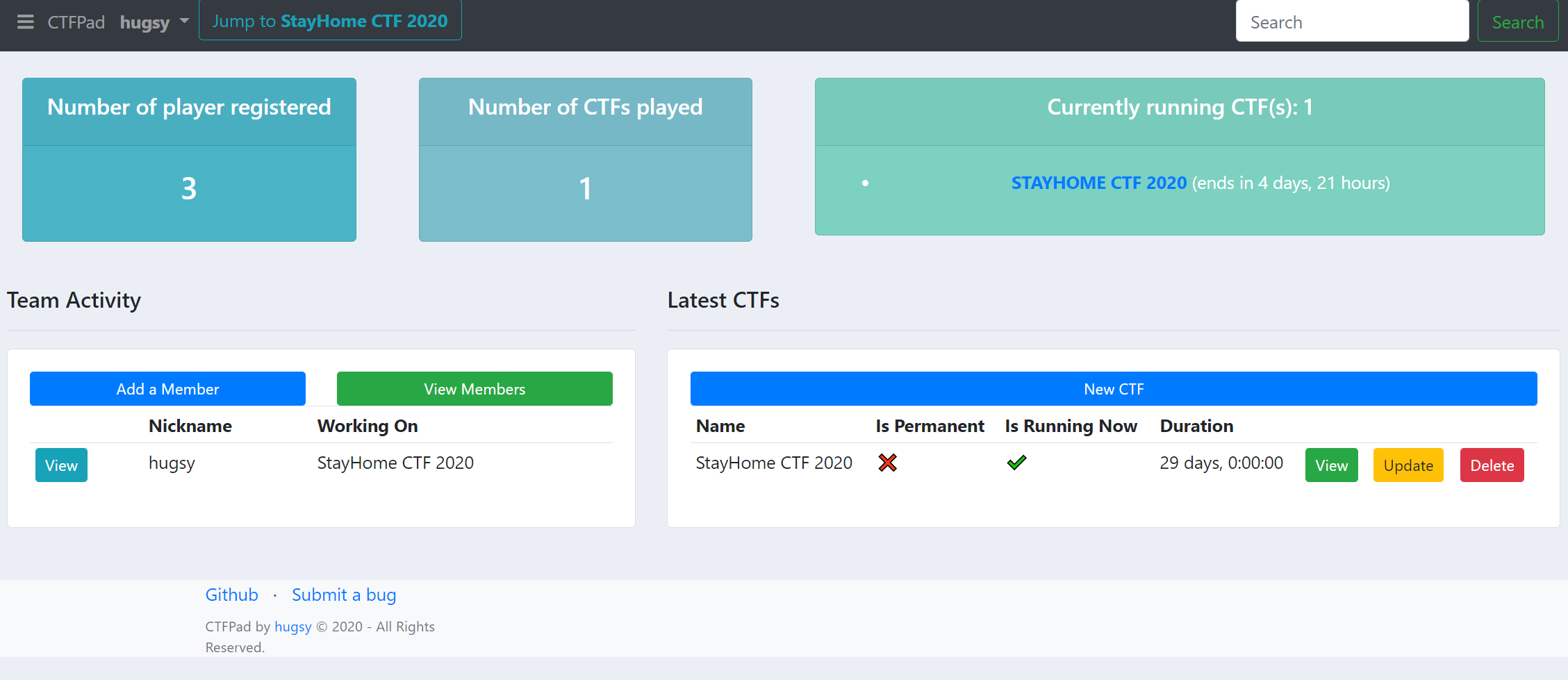 A webapp for managing CTFs by teams playing CTFs. If you're looking for a platform for hosting CTFs use CTFd.