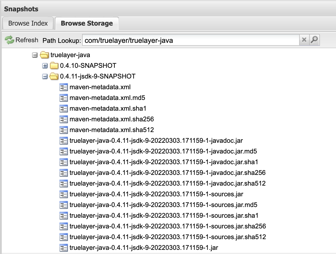 https://s01.oss.sonatype.org/content/repositories/snapshots/) amongst the repositories and a dependency to our lib following the SNAPSHOT format, i.e.com.truelayer:trulayer-java:0.0.2-SNAPSHOT. With this approach we can release to external devs new artifacts without the need of explicit releases/tagsgradle.propertiesfile will have to contain a version in the$major.$minor.$buildformat, ie without-SNAPSHOTsuffixes. This is meant to ease the merge to the main branch later: we don't have to change the version right before or after merging to the main branchThe declared version should not be already released as final version on Maven Central. For instance: if we already released awill see if it makes sense in futurecom.truelayer:trulayer-java:0.0.3a workflow with versioncom.truelayer:trulayer-java:0.0.3in the gradle.properties will fail - the following HTTP request has to return 404:https://repo1.maven.org/maven2/com/truelayer/truelayer-java/$version/truelayer-java-$version.pomgradle.propertiesfile ) will be released on every push on non main branches. Our CI will add a-SNAPSHOTsuffix to the declared version and display on the GH WF what snapshot version we're packaging and publishing exactly. Gradle will automatically replace theSNAPSHOTlabel with the current timestamp at artifact packaging time. The same tooling will make sure that the latest timestamp available will be used when declaring aSNAPSHOTdependency in a project.Final releases