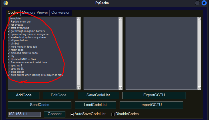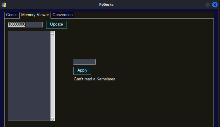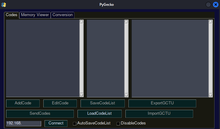 this is JGecko U completely remade in Python form. It included the ability to send Cafe codes, Assembly RAM memory writes and such. In order to run it, execute it like any other .py app/ "python example.py"