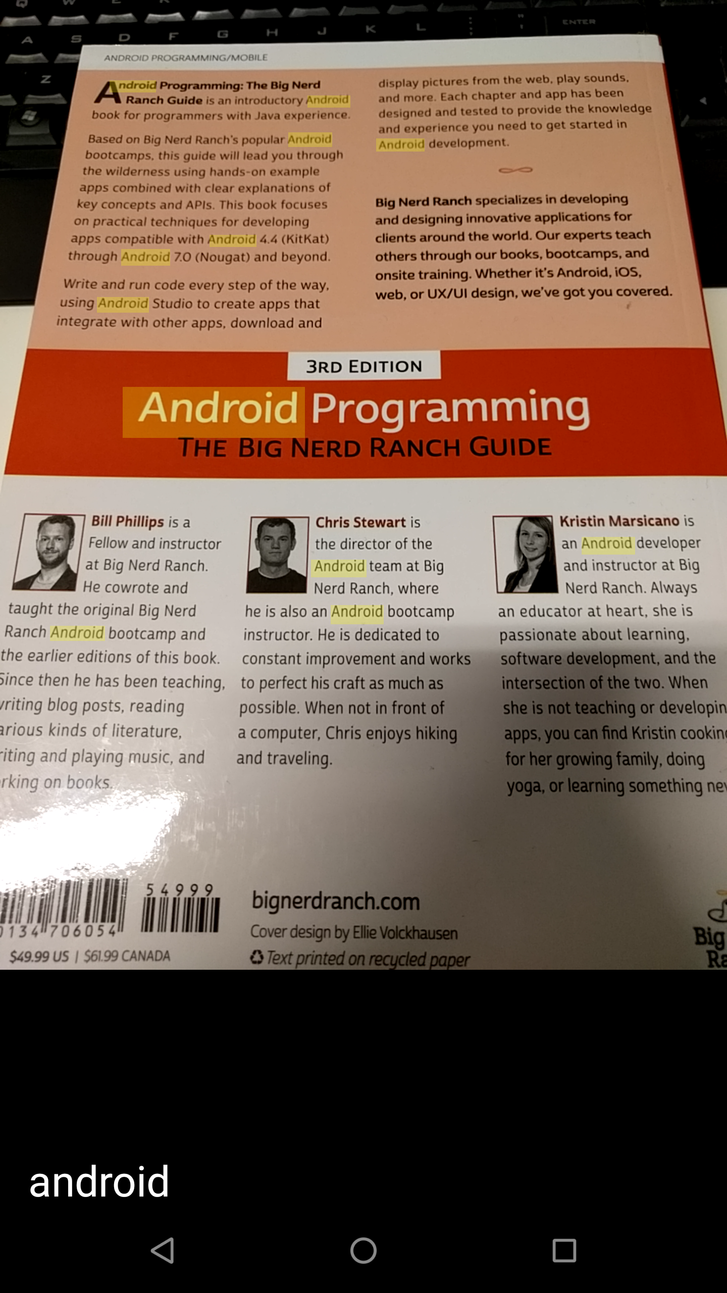 It adds the ability to enter a search query and detect matches in any text that the camera is pointed at. The matching text will be highlighted in real time. It also adds the ability to detect and highlight text that spans across multiple lines. This is not always the most reliable due to the variance in text results as the frames are processed. So the highlight may show for some frames, disappear in others, then show again.