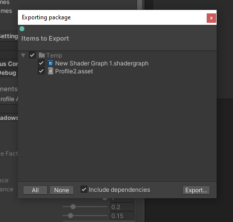 I created a ShaderGraph file with a diffusion profile node, created a diffusion profile in the project assigned it to the node, saved the graph, and exported the graph as a package. The diffusion profile asset is exported as a dependency like expected.
