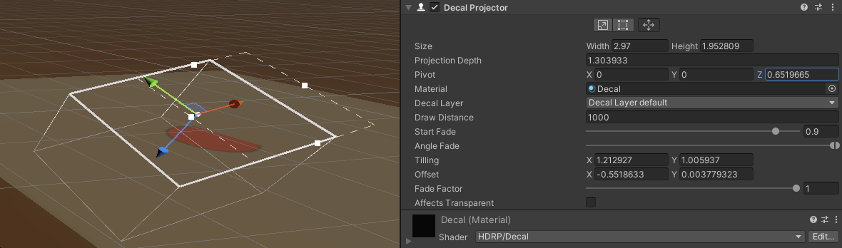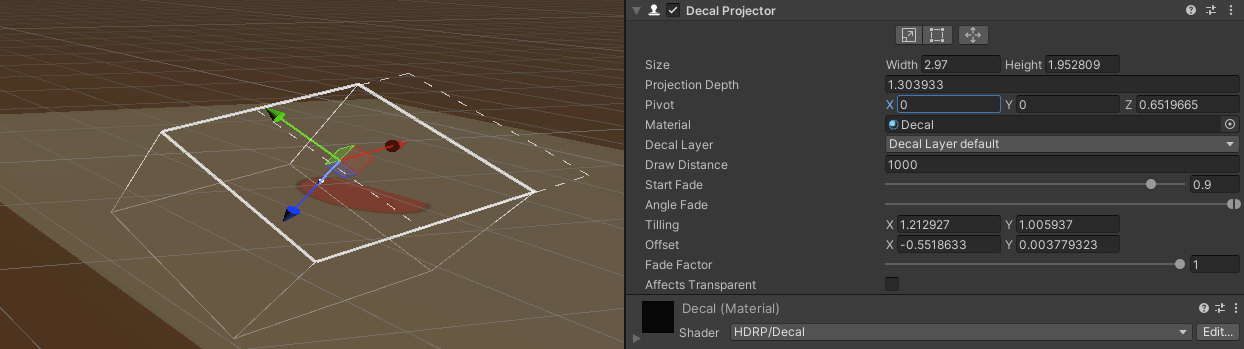 // Both the DecalProjectorComponent, and the transform will be modified. | ||
