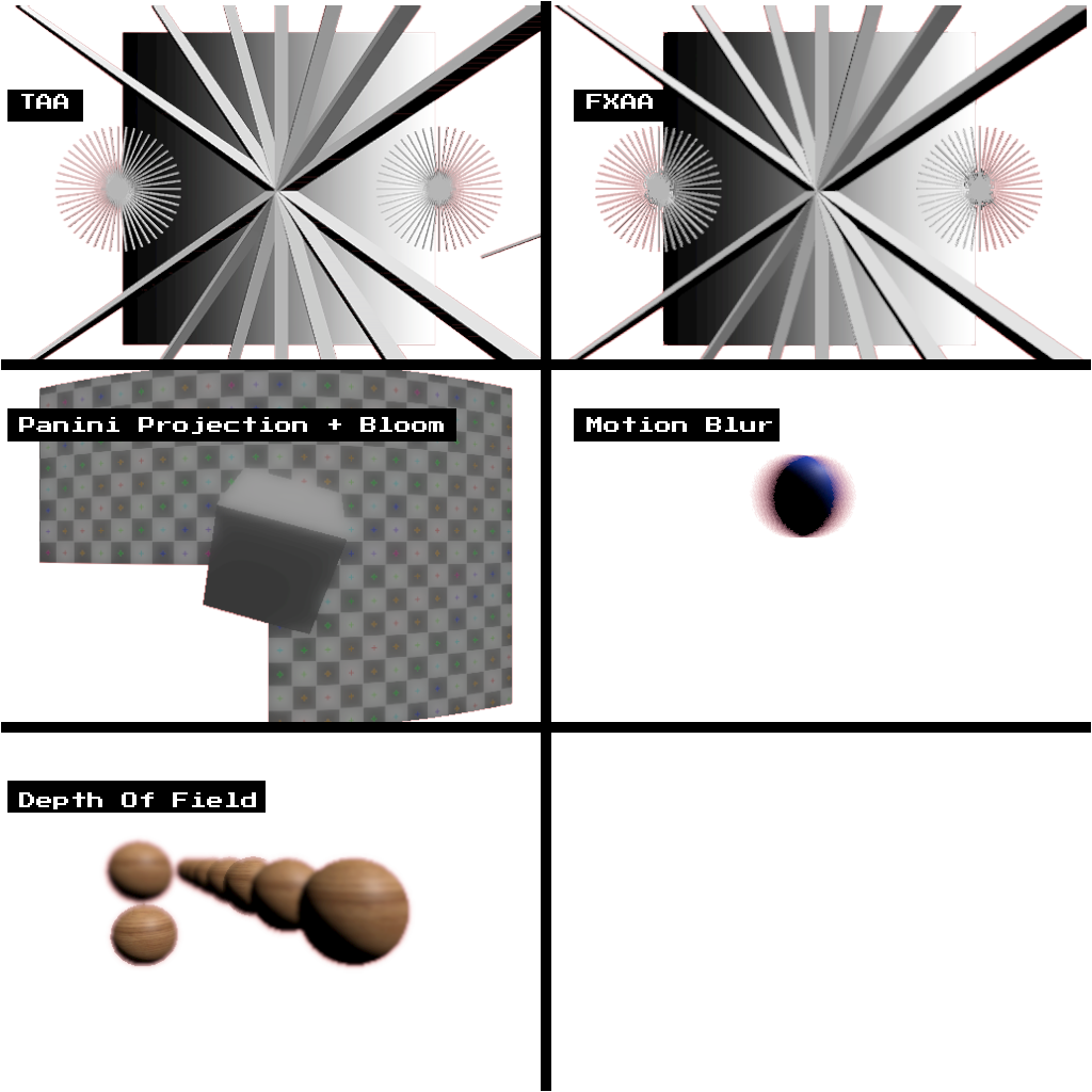PR is meant to bring coverage for the issue previously breaking Panini Projection with Color and Post Process buffer using Alpha channel that was fixed here: #4133, while also adding coverage for other effects performing their own pass to Color Buffer.