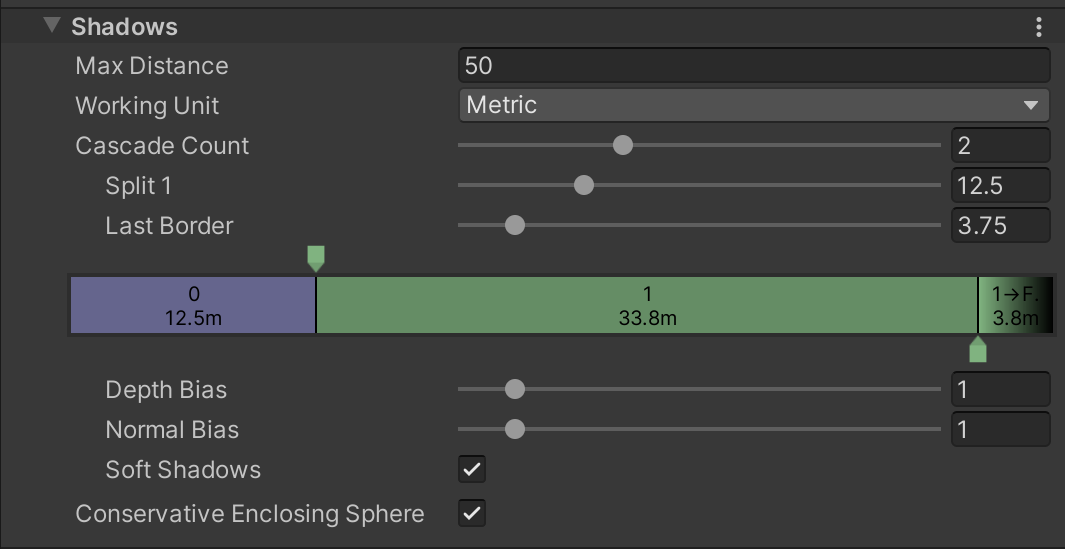 public static GUIContent conservativeEnclosingSphere = EditorGUIUtility.TrTextContent("Conservative Enclosing Sphere", "If enabled, a conservative enclosing sphere is used. If disabled, the sphere will be smaller than the cascade size, and shadows will be culled in the corners of the cascades."); |