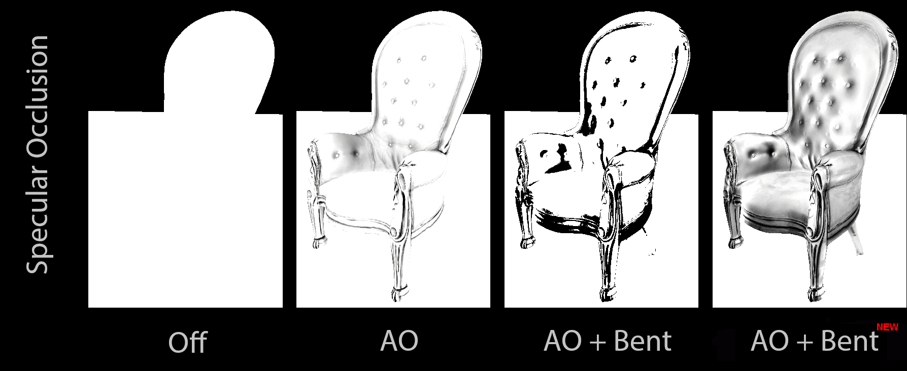 This new version reduces specular occlusion sharpness for high smoothness materials, and reduces over darkenning of surfaces when looking at grazing angles.