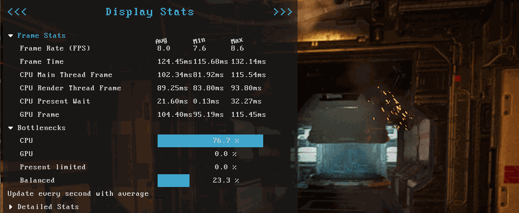 … Foldouts. - Rearrange new Frame Stats in a column layout, show Avg/Min/Max for each value. - Rearrange HDRP detailed stats in a column layout, with CPU/CPUInline/GPU as the columns. - Pinning ValueTuples to PersistentCanvas is visualized by separating each column value with "/". Not ideal but needed something compact. - Fix a bug with Foldouts that allowed runtime and editor collapsed state getting out of sync.