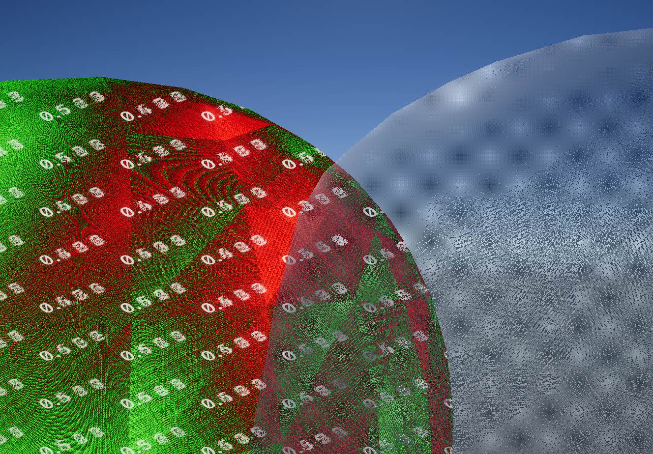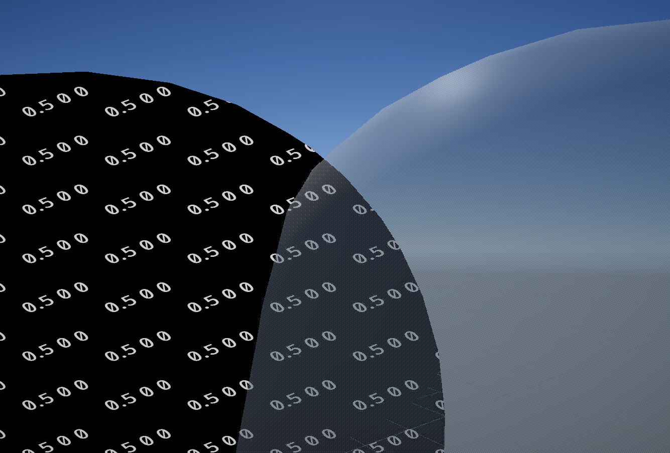 Right sphere shows a screenspace checkerboard alphatest pattern