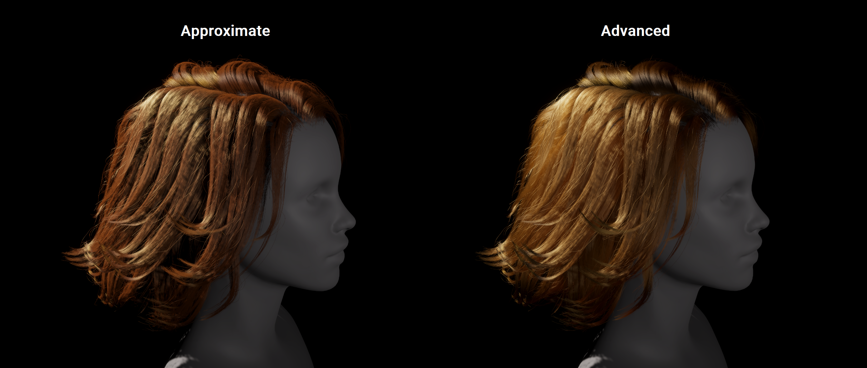 The Advanced mode is based off of pre-integrated tables derived from the physically principled Marschner BSDF and currently is only confirmed to support strand geometry, which is why currently we only support the Advanced mode when the Marschner model is chosen.