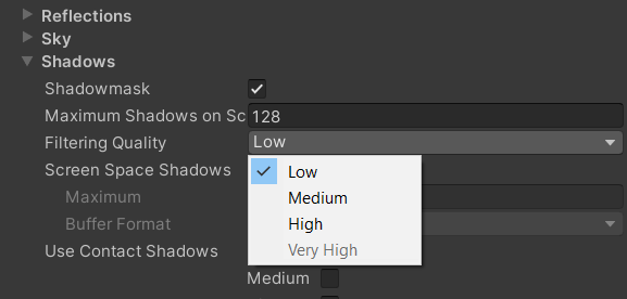 e => (HDShadowFilteringQuality)e != HDShadowFilteringQuality.VeryHigh, /* TEMP: HDShadowFilteringQuality.VeryHigh - This filtering mode is not ready so disabling in UI */ | |