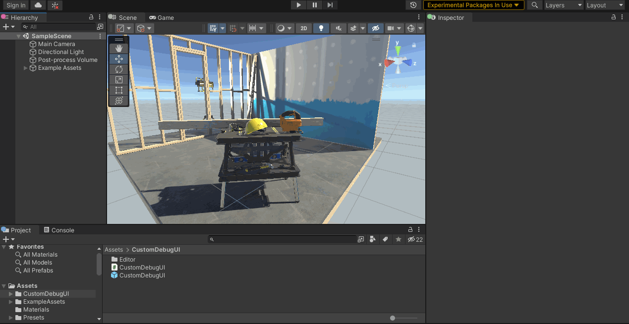 Tested locally by creating a simple script (custom-debugui-v2.zip) that uses the public API. This simulates the usecase that users of the API would have.