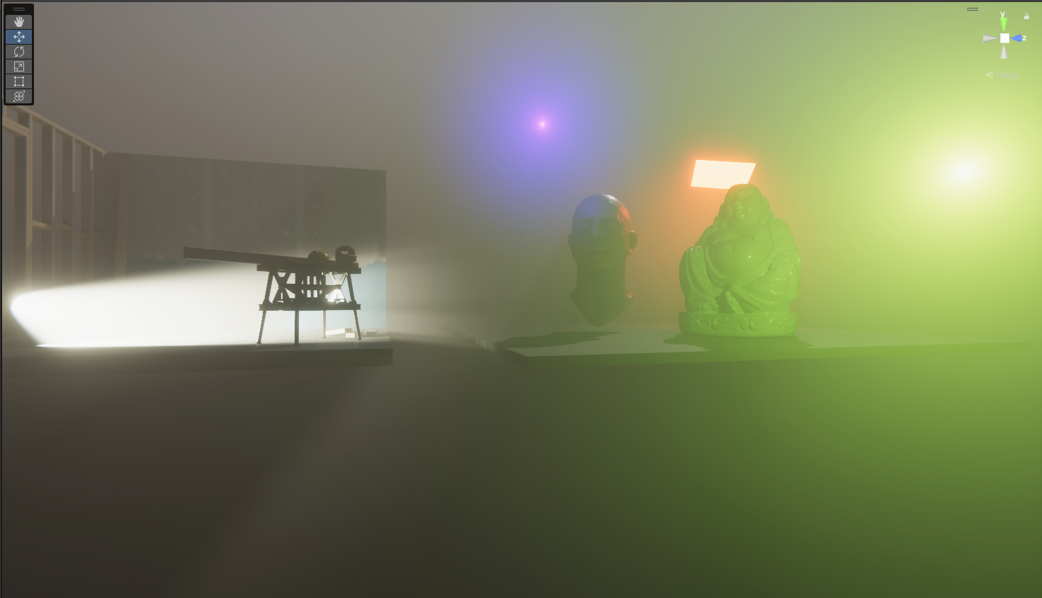 It also uses the fog color to produce a result similar to the non-volumetric one, and then adds volumetrically scattered contributions on top of it (which is IMHO a better behaviour than what the raster version does, whose computations I couldn't make sense of).
