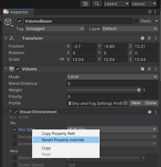 Adding a context menu "Revert Property Override" for Property Fields of Volume Components