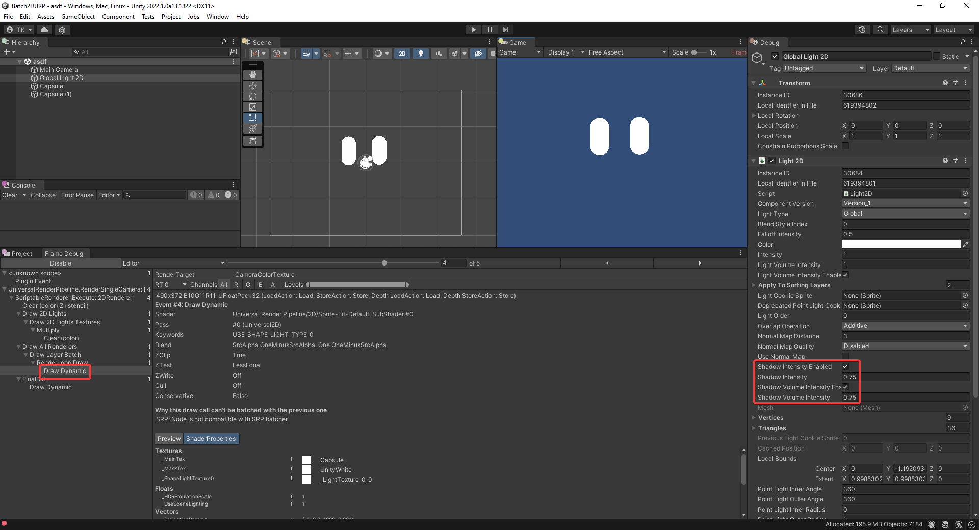 Fix verified on branch: 2022.1.0a13.1822 case 1376487: Verified only 1 Draw Dynamic call in Frame Debugger, capsules in scene are drawn together/batched |