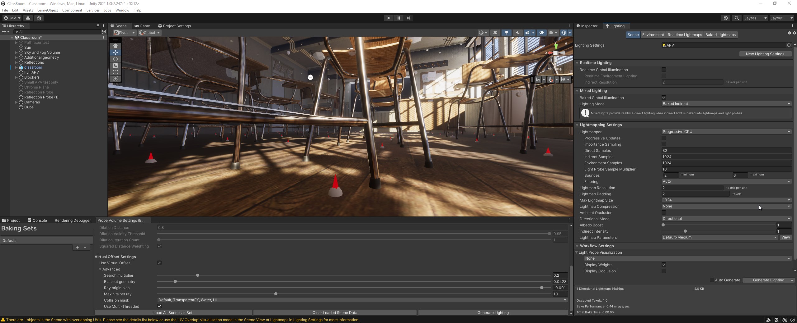 The primary purpose of this PR is to improve APV probe position Virtual Offset performance. The current implementation runs entirely on the main thread and doesn't scale well to complex scenes, with the VO pass routinely taking longer to complete than actual (GPU) lightmapper raycasting. This PR implements a bursted, concurrent alternative, while also tweaking the heuristics slightly to handle certain cases better (in the scenes tested by the author).