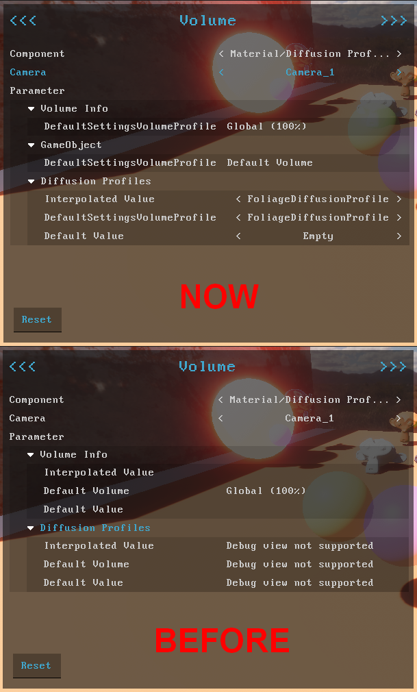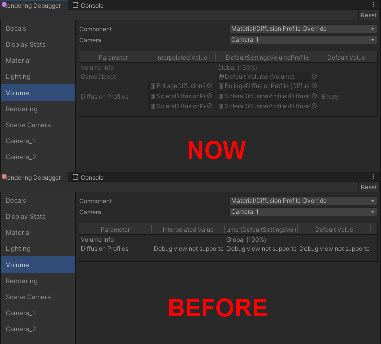 Added new debug widgets for the debug menu to show what diffusion profiles are currently in use by the volume system.