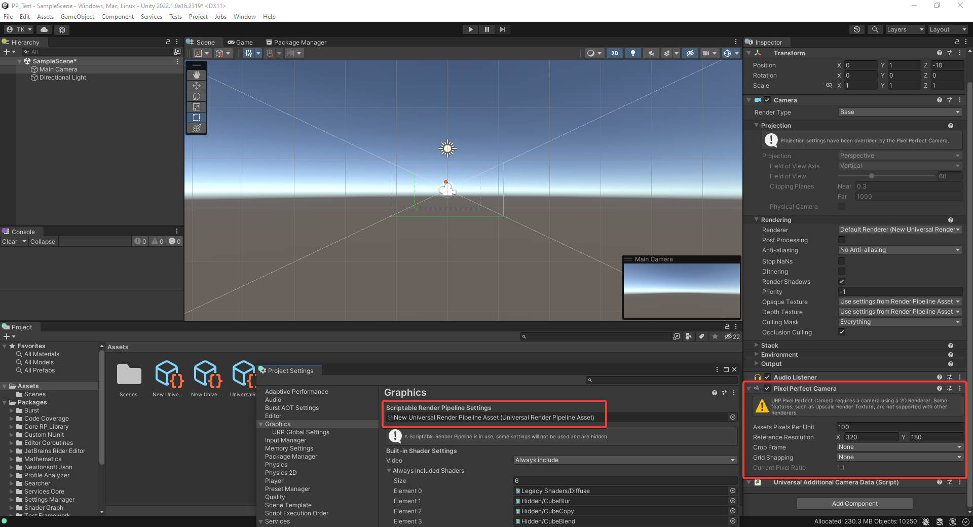 [SRP] Add warning for users that want to use pixel perfect cam with other renderers #6294
