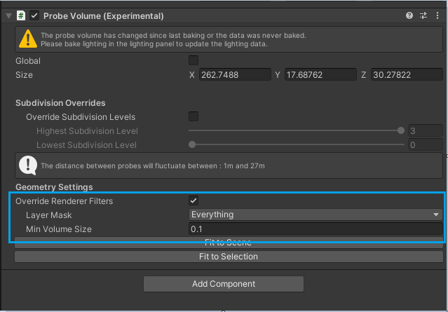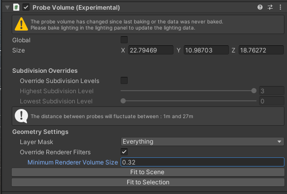 internal static readonly GUIContent s_OverrideMinRendererVolumeSize = new GUIContent("Override Renderer Filters", "Overrides the Minimum Renderer Volume Size specified in the Probe Volume Settings Window."); |