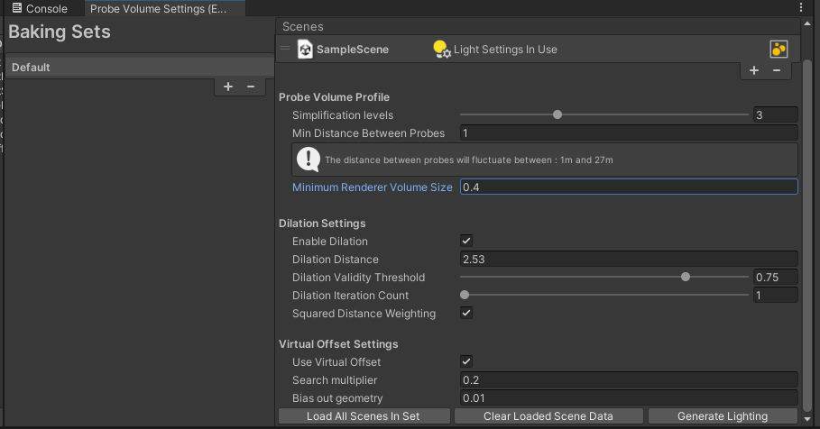 internal static readonly GUIContent s_GeometryDistanceOffset = new GUIContent("Probe Placement Distance Offset", "Affects the minimum distance at which the subdivision system will attempts to place probes near the geometry. This value can be useful in situations where the generated probes don't fully cover an object."); | ||